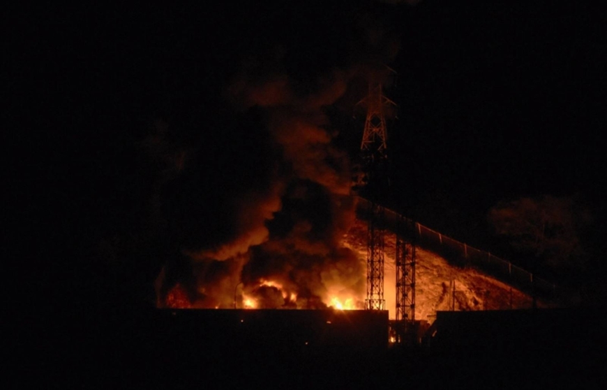 | Khói lửa bốc lên tại khu phức hợp quân sự Fuerte Tiuna lớn nhất Venezuela. Ảnh: Japantimes.co.jp/TTXVN |