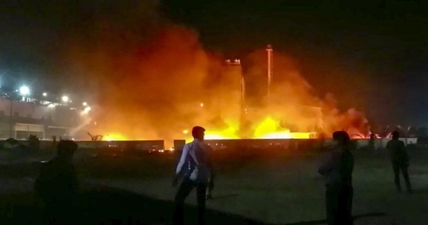 Vụ nổ đã gây ra đám cháy tại nhà máy hóa chất ở bang Gujarat, miền Tây Ấn Độ. Ảnh: PTI