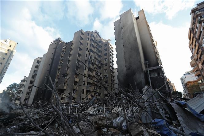 Những tòa nhà bị phá hủy sau các vụ oanh kích của Israel xuống thủ đô Beirut, Lebanon ngày 9-4-2026.