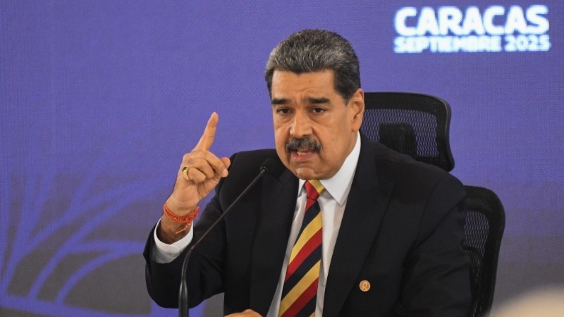 | Tổng thống Venezuela Nicolas Maduro trong cuộc họp báo tại Caracas, tháng 9/2025. (Ảnh: THX/TTXVN) |