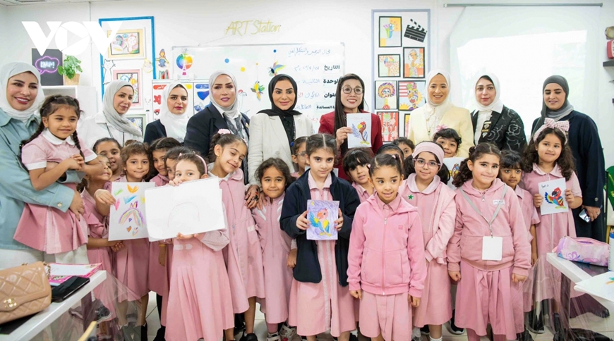 Cũng trong khuôn khổ chương trình, Phu nhân Lê Thị Bích Trân và Bộ trưởng Amthal Al-Huwaila đã thăm Trường Tiểu học nữ Asma Bint Yazid Al Ansariyah, nơi đào tạo trẻ em gái trong môi trường học tập hiện đại và nhân văn.