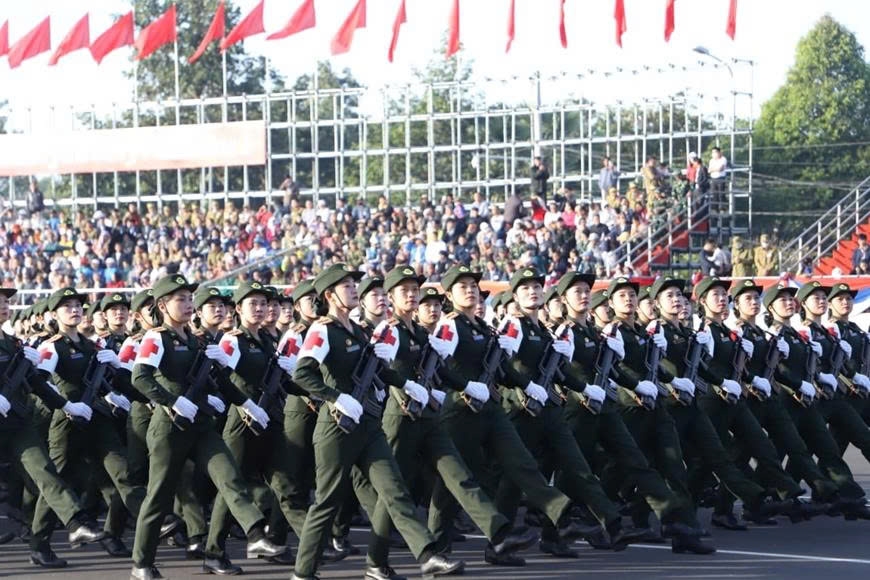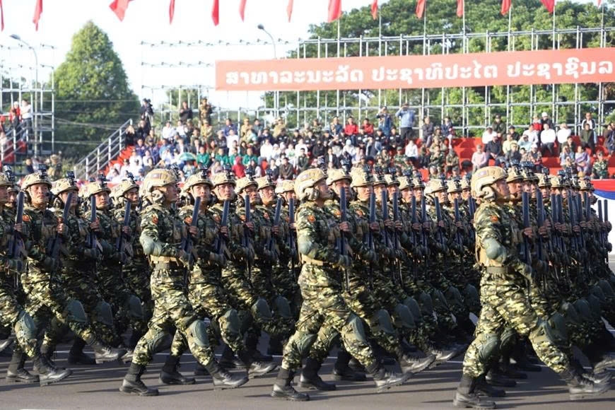 Các lực lượng Quân đội nhân dân Lào tham gia lễ diễu binh, diễu hành kỷ niệm 50 năm Quốc khánh Lào. Ảnh: kongthap.gov.la