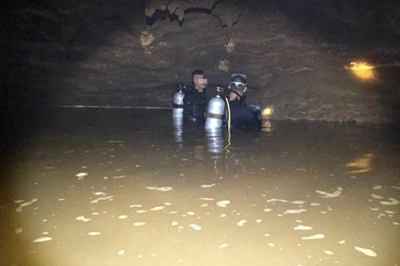 Thành viên đội thợ lặn tìm kiếm người mất tích trong hang Tham Luang. Ảnh: Pattaya News. |