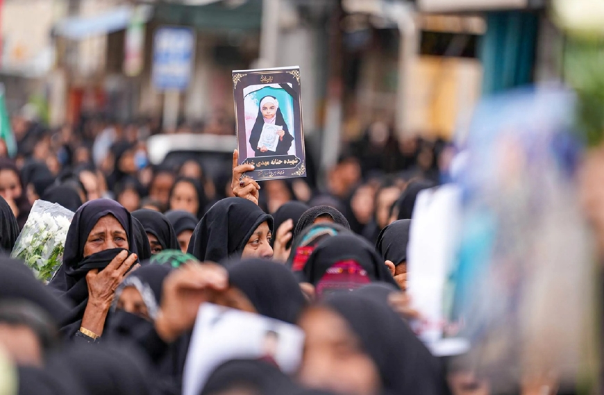 | Người dân Iran tổ chức đám tang tập thể cho các nạn nhân trong vụ trường nữ sinh bị tấn công. Ảnh: Anadolu |