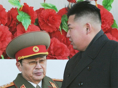| Ông Jang Song Thaek (trái) lúc đương nhiệm chức Phó Chủ tịch Ủy ban Quốc phòng của Triều Tiên tại một lễ kỷ niệm quốc gia tại Bình Nhưỡng ngày 16-12/2012. (Ảnh: Kyodo/ TTXVN) |