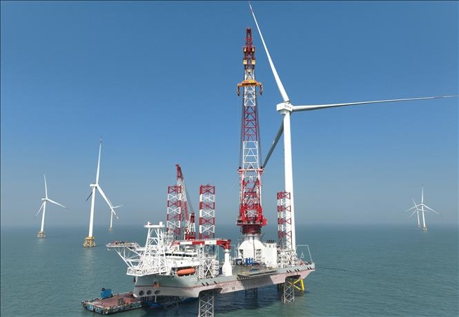 Trung Quốc đưa vào vận hành tuabin gió ngoài khơi công suất lớn nhất thế giới. Ảnh: THX/TTXVN