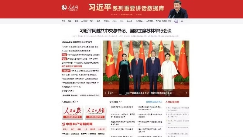 | Ngày 15-4, Nhân dân Nhật báo điện tử đưa nổi bật thông tin các hoạt động quan trọng trong khuôn khổ chuyến thăm cấp Nhà nước của Tổng Bí thư, Chủ tịch nước Tô Lâm theo lời mời của Tổng Bí thư, Chủ tịch Trung Quốc Tập Cận Bình. Ảnh chụp màn hình |