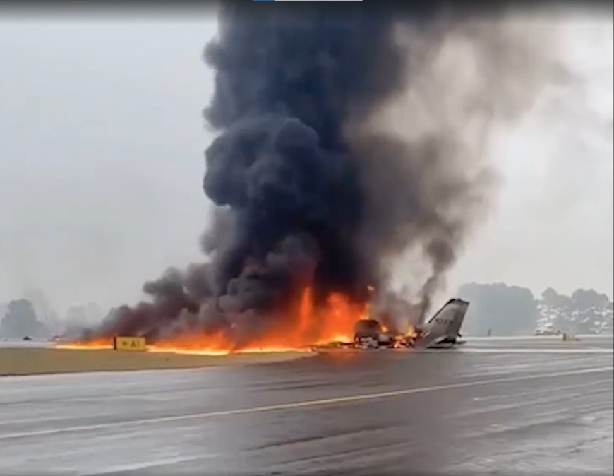 Các đoạn video tại hiện trường cho thấy, lực lượng cứu hộ đã nhanh chóng có mặt, nhưng những mảnh vỡ của máy bay đã bị ngọn lửa bao trùm hoàn toàn trên đường băng.