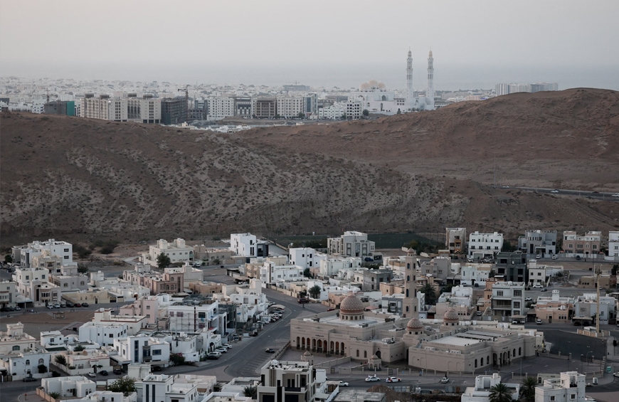 Các tòa nhà bao quanh Nhà thờ Hồi giáo Mohammed Al Ameen, trong bối cảnh xung đột Mỹ - Israel với Iran, tại Muscat, Oman, ngày 3-3. Ảnh: Reuters