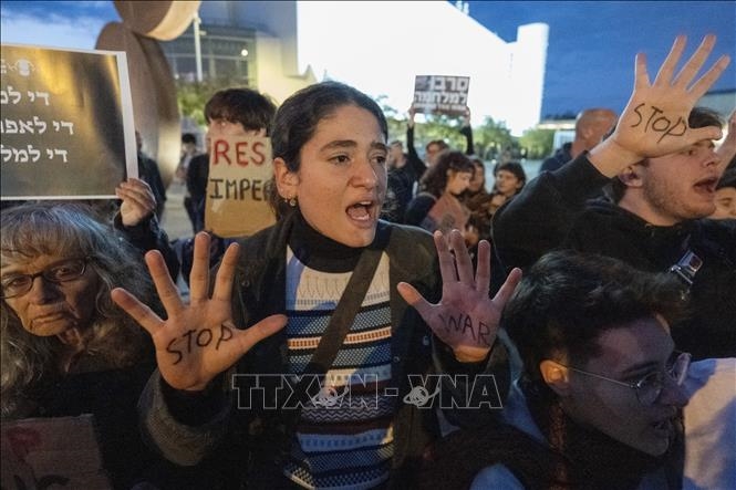 | Người dân tại Tel Aviv, Israel, tham gia biểu tình kêu gọi chấm dứt xung đột. Ảnh: THX/TTXVN |