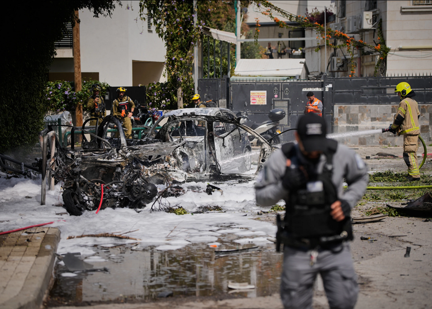 Lính cứu hỏa dập tắt đám cháy tại một địa điểm bị trúng tên lửa Iran ở Tel Aviv, Israel, ngày 15-3. Ảnh: AP