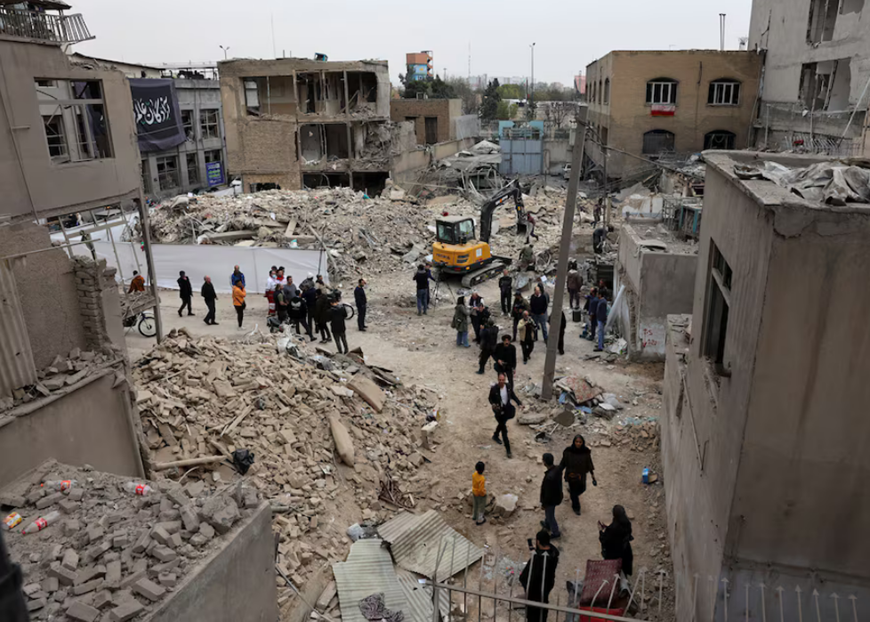 | Người dân tập trung tại hiện trường một vụ không kích ở thủ đô Tehran của Iran, ngày 15-3. Ảnh: Reuters |