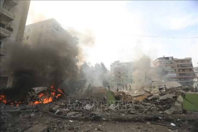 Hiện trường đổ nát trong một vụ không kích của Israel vào phía Nam ngoại ô Beirut, Lebanon.