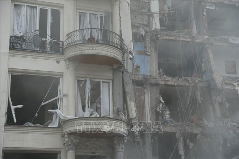 | Tòa nhà bị phá hủy sau các cuộc không kích của Mỹ và Israel xuống thủ đô Tehran, Iran. Ảnh: THX/TTXVN |