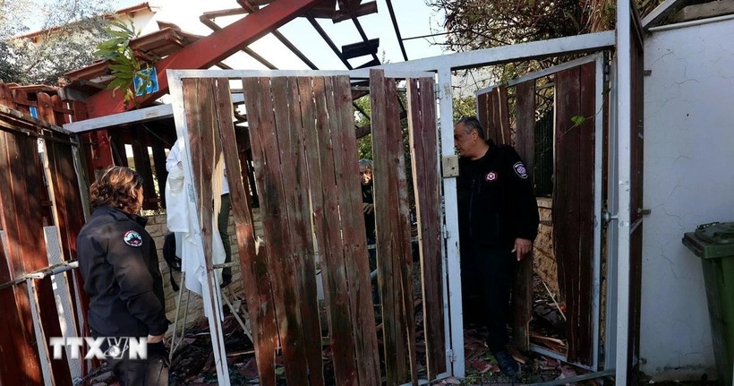 | Ngôi nhà bị phá hủy sau vụ tấn công tên lửa tại Rishon Letsiyon, Israel, ngày 9-3. |