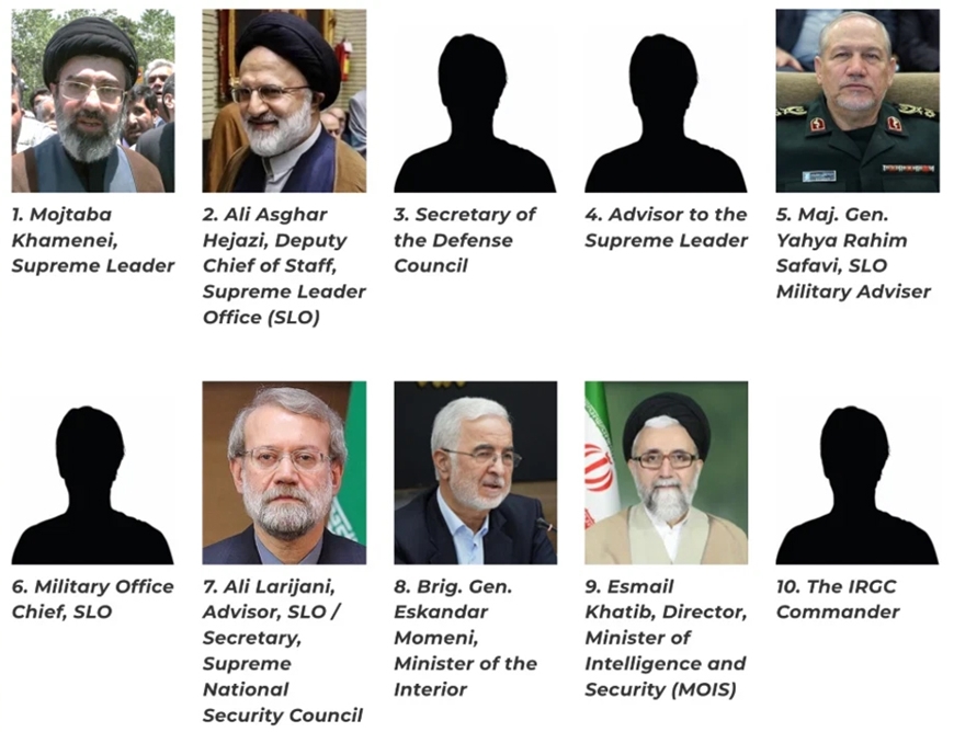 Theo thông báo của Bộ Ngoại giao Mỹ, Nhà Trắng công bố hình ảnh và muốn tìm kiếm thông tin “có giá trị” về các nhân vật kỳ cựu trong nội bộ chính trường Iran hiện nay như Lãnh tụ tối cao Mojtaba Khamenei, Phó chánh Văn phòng Lãnh tụ Tối cao Iran Ali Asghar Hejazi, Cố vấn quân sự cấp cao của Lãnh tụ tối cao Yahya Rahim Safavi, Bộ trưởng Nội vụ Eskandar Momeni, Bộ trưởng Tình báo Esmail Khatib…