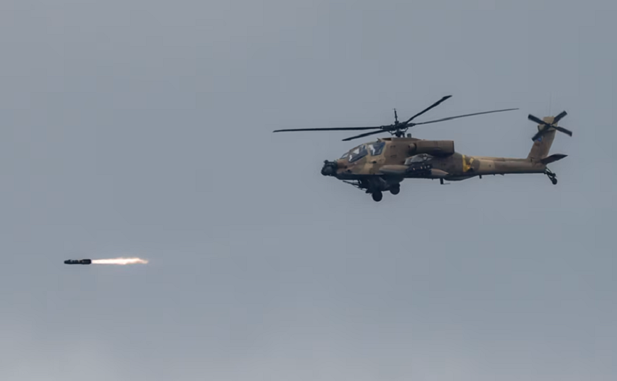 | Một trực thăng của Israel khai hỏa khi đang bay dọc biên giới giữa Israel và Lebanon hôm 4-3. Ảnh: CNN |