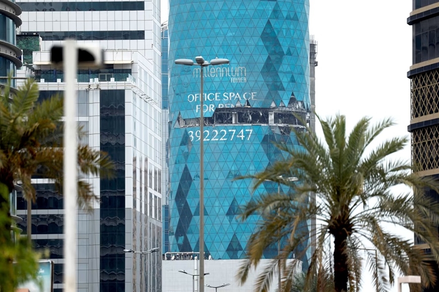 | Một tòa nhà bị hư hại sau cuộc tấn công bằng UAV ở Bahrain vào thứ Ba. Ảnh: Reuters |
