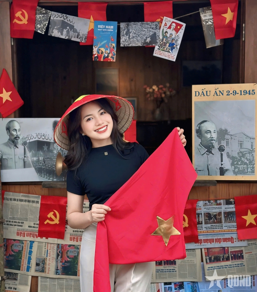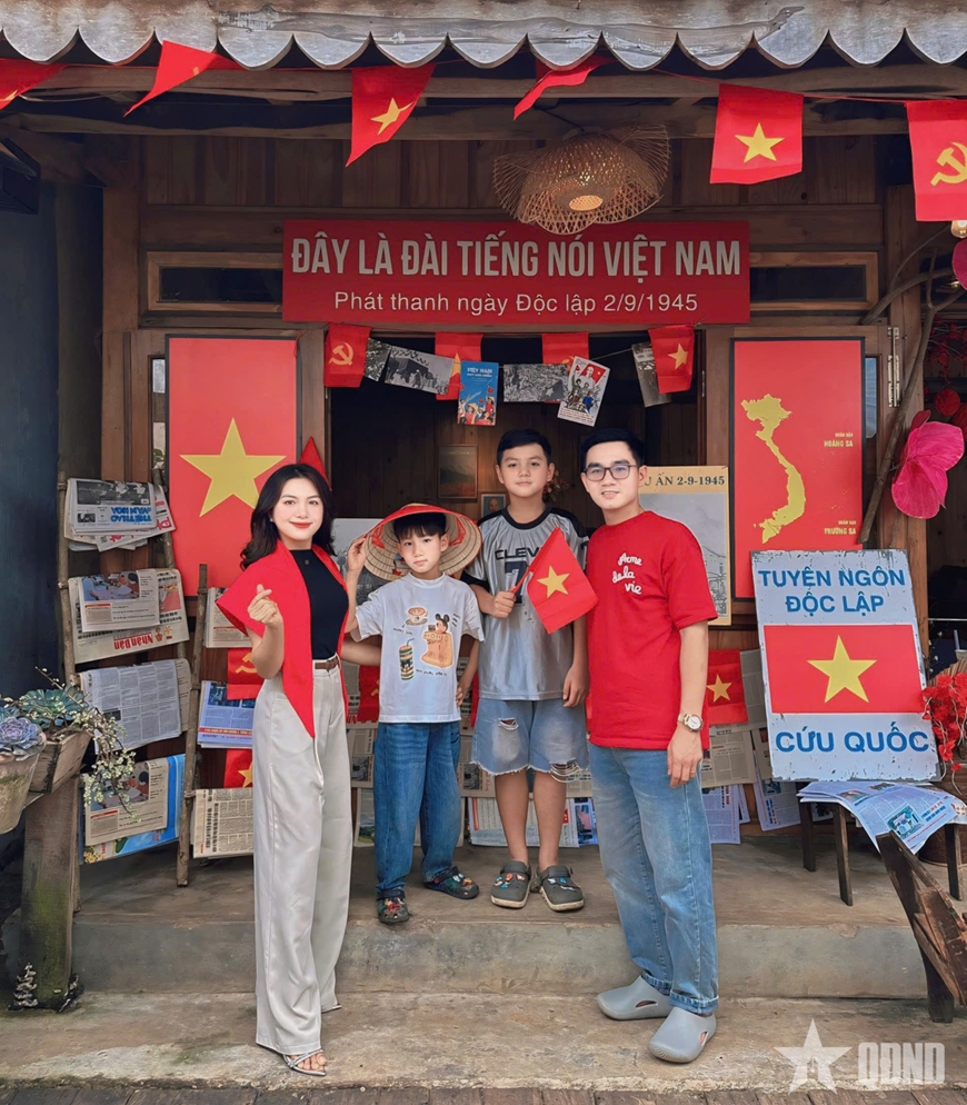 Gia đình chị Hoàng Thị Kim Hiếu đón Tết Độc lập trong niềm tự hào dân tộc. |