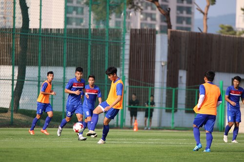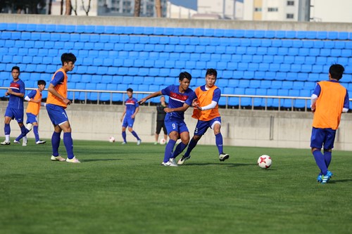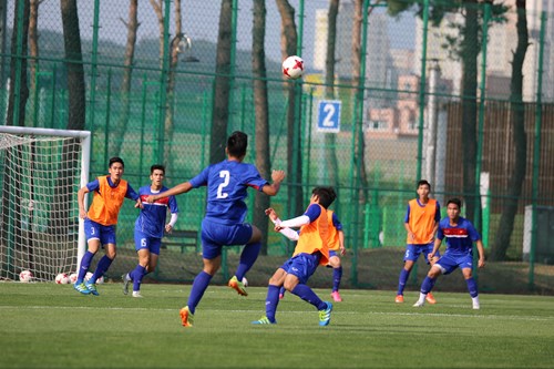 U20 Việt Nam tập chiến thuật nhằm chuẩn bị cho trận gặp U20 Pháp. Ảnh: Nhật Đoàn