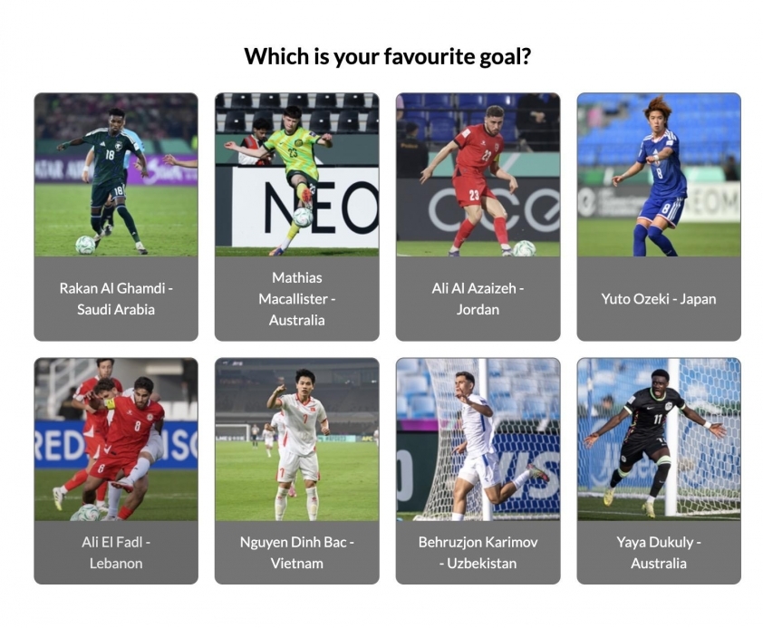 Sau khi kết thúc giai đoạn vòng bảng của U23 châu Á 2026, Liên đoàn Bóng đá châu Á (AFC) đã liệt kê các đề cử bàn thắng đẹp nhất của giải đấu trước khi vào tứ kết.