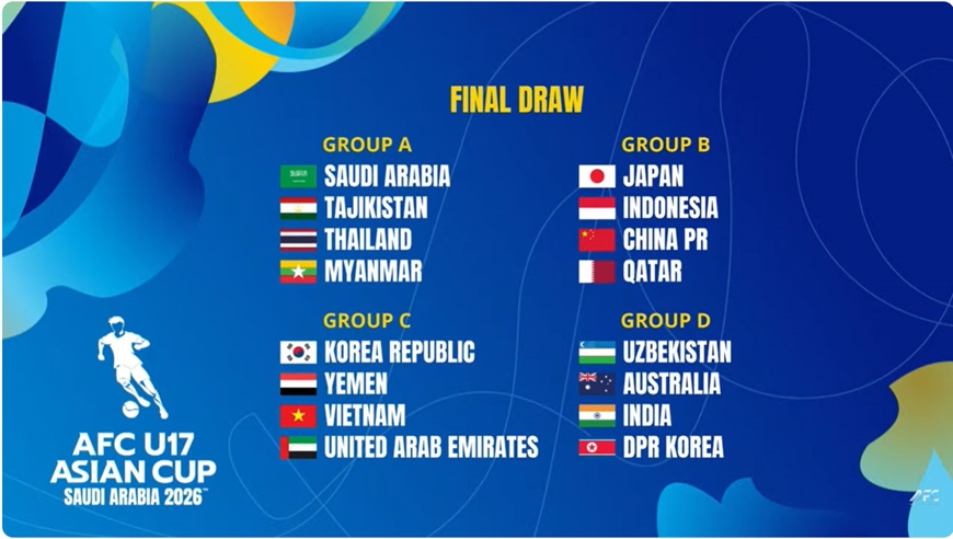 Vòng chung kết Giải bóng đá U17 châu Á 2026 dự kiến diễn ra tại Saudi Arabia từ ngày 7-5 đến 24-5 với sự tham dự của 16 đội tuyển.