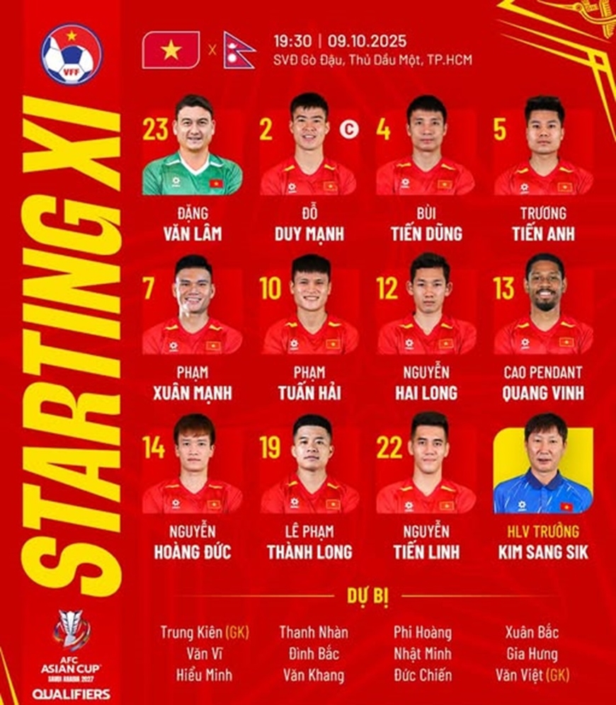 Tối 9-10, trên sân Gò Đậu (TP Hồ Chí Minh), đội tuyển Việt Nam thi đấu với đội tuyển Nepal tại lượt trận thứ 3 bảng F vòng loại thứ 3 Asian Cup 2027.