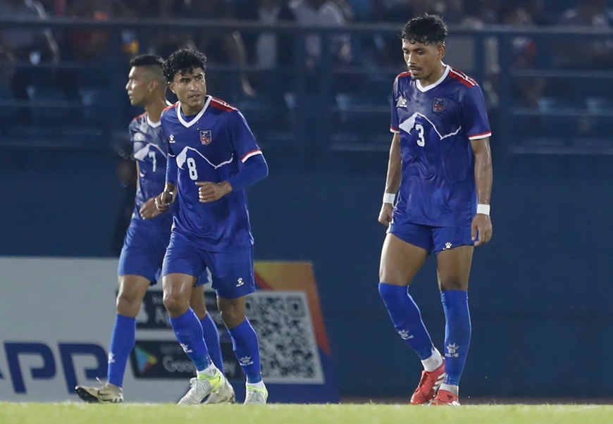 Các cầu thủ Nepal bất ngờ có bàn gỡ hòa 1-1. Ảnh: Vietnamnet |