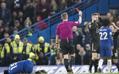Khi Chelsea gặp khó, thì Leicester lại giúp sức khi họ chỉ còn chơi với 10 người từ phút 68. Chilwell vào bóng ác ý không cần thiết với Moses và nhận thẻ vàng thứ 2.