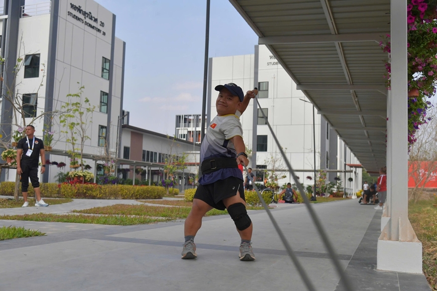| Do ban tổ chức chưa bố trí được chỗ tập luyện nên nhiều vận động viên Việt Nam tập luyện trong khuôn viên nơi ở. Ảnh: THÁI DƯƠNG |