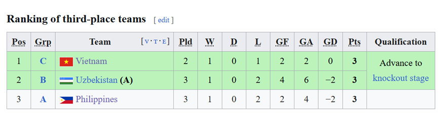 | Theo bảng xếp hạng các đội xếp thứ 3 hiện tại, đội tuyển nữ Uzbekistan chính thức có vé vào tứ kết. |