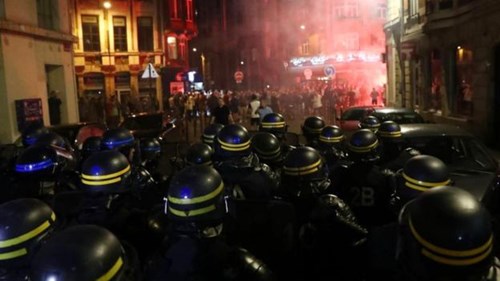 Cảnh sát Pháp lao vào giải tán đám đông CĐV quá khích. Ảnh: Gettyimages.