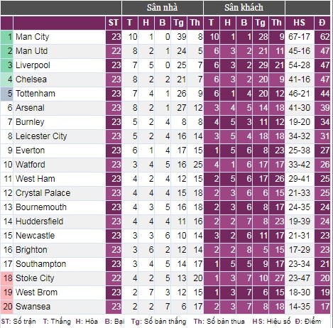 Bảng xếp hạng tạm thời của Premier League. Ảnh: bongdaso.com |