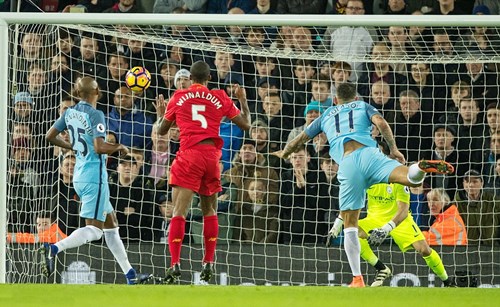 Liverpool đã bất ngờ vượt lên dẫn trước ngay ở phút thứ 8 khi Adam Lallana từ cánh trái có quả tạt vào đúng tầm để Wijnaldum bật rất cao đánh đầu tung lưới Man City.