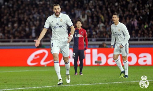 Sang hiệp hai, Shibasaki một lần nữa tỏa sáng giúp CLB Kashima vươn lên dẫn trước ở phút 52. Bị dẫn bàn, Real Madrid vùng lên tấn công và sớm có bàn gỡ hòa của Ronaldo ở phút 60 nhờ pha đá 11m thành công sau tình huống Vazquez bị phạm lỗi trong vòng cấm.