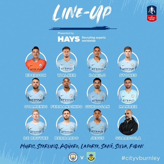 Dù phải căng sức ở giải Ngoại hạng Anh và sắp tới là Champions League nhưng HLV Pep Guardiola vẫn tung ra đội hình mạnh để đảm báo chiếm ưu thế trước Burnley. Ảnh: twitter.com/ManCity |