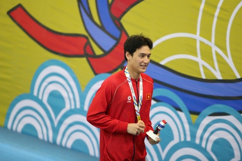 | Kình ngư trẻ Trần Văn Nguyễn Quốc giành huy chương đồng ngay lần đầu tiên tham dự SEA Games. Ảnh: Thethao247.vn |