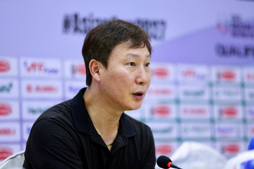 Huấn luyện viên Kim Sang-sik chia sẻ sau trận đấu. Ảnh: VFF |