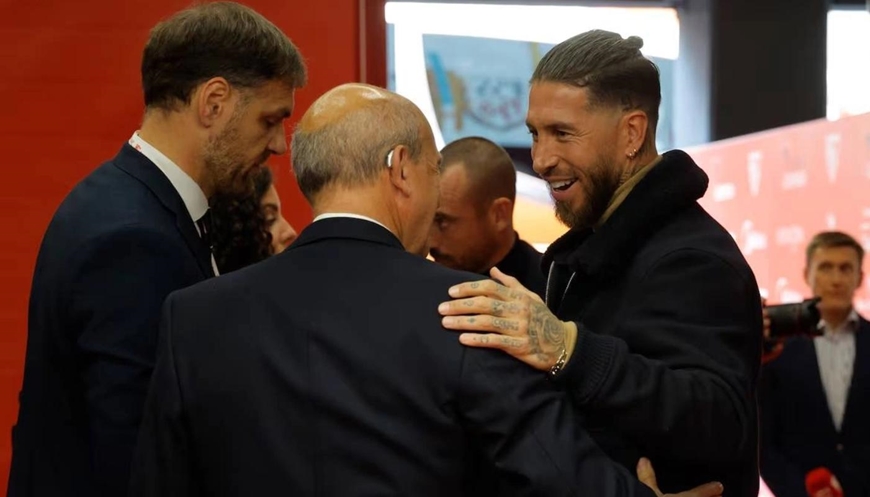 | Ramos (phải) gặp các lãnh đạo Sevilla đầu tháng 1-2026. Ảnh: AS |