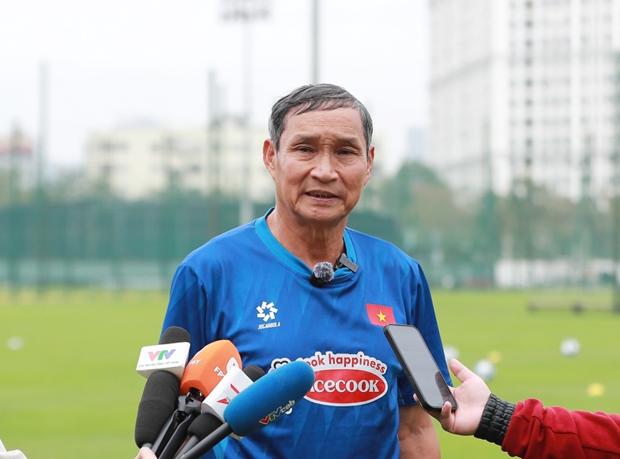 | Huấn luyện viên Mai Đức Chung chia sẻ với báo chí. Ảnh: VFF |