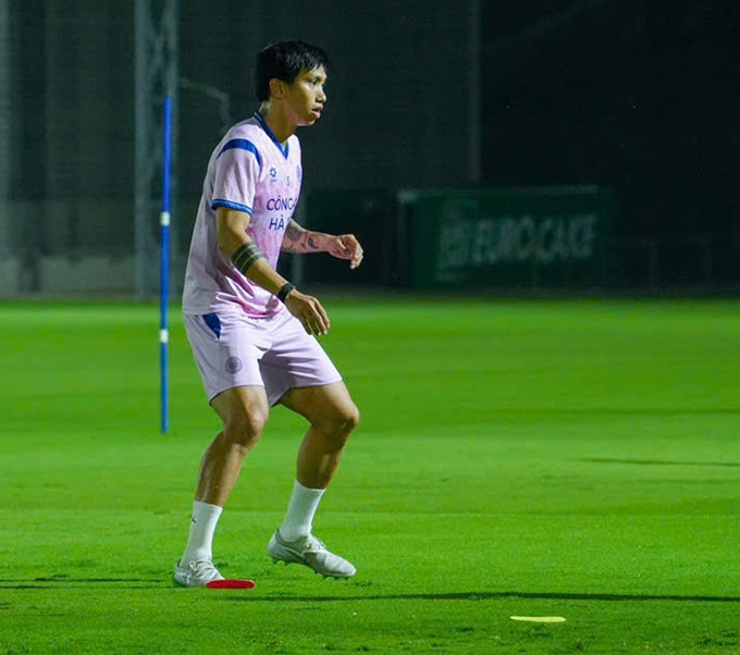 Đoàn Văn Hậu tham gia tập luyện trong đội hình của câu lạc bộ Công an Hà Nội. Ảnh: Câu lạc bộ Công an Hà Nội