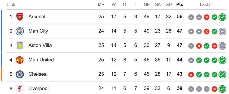 Arsenal giữ vững ngôi đầu trên bảng xếp hạng. Ảnh: ESPN
