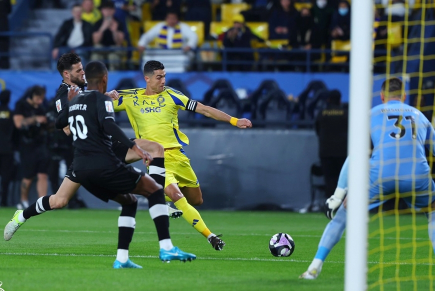 Trong thế trận khó khăn, Ronaldo đã kịp lên tiếng khi góp dấu giày trong cả 2 bàn thắng giúp chủ nhà dẫn ngược 2-1. Theo đó, phút 45+2, CR7 thực hiện cú đá phạt khó chịu, khiến hàng thủ Al Shabab lúng túng. Ayman Yahya chớp cơ hội để ghi bàn gỡ hòa 1-1. Chỉ ít phút sau, lại là Ronaldo xâm nhập vùng cấm, trước khi tung cú sút căng từ góc hẹp, không cho thủ môn đội khách cơ hội cản phá. Dù trọng tài biên căng cờ báo việt vị, sau khi mất đến 10 phút xem xét, trọng tài chính vẫn công nhận bàn thắng cho Al Nassr. Đáng chú ý, đây là bàn thắng thứ 926 trong sự nghiệp của Ronaldo.