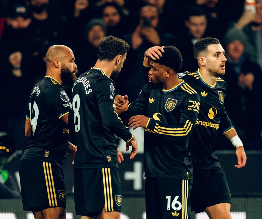 | Các cầu thủ Man Utd mừng bàn thắng vào lưới Wolves. Ảnh: Manchester United FC |