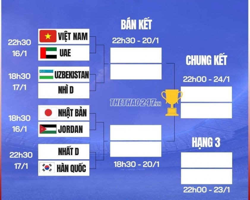 Trận đấu giữa U23 Việt Nam và U23 UAE sẽ diễn ra lúc 22 giờ 30 (giờ Việt Nam) ngày 16-1.