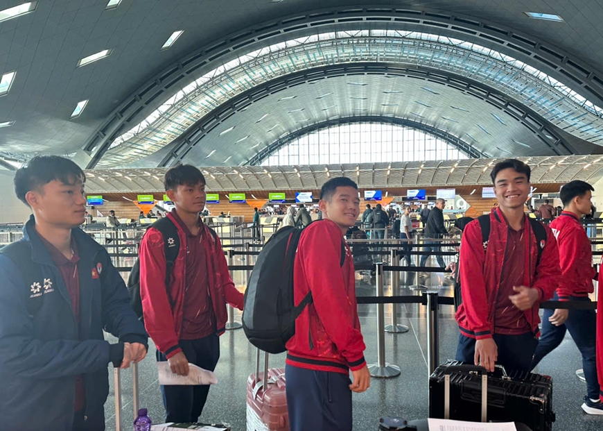 Các cầu thủ U23 Việt Nam hoàn tất thủ tục di chuyển sang Saudi Arabia. Ảnh: VFF