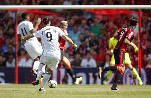 QĐND Online - Trong trận đấu ở vòng 1 Premier League mùa giải mới 2016-2017, MU đã vượt qua Bournemouth ngay trên sân khách. Trong đó, tiền đạo Zlatan Ibrahimovic ghi bàn ở phút 64 với cú sút xa đẹp mắt, góp công trong chiến thắng 3-1 của "Quỷ đỏ". Với bàn thắng này, ngôi sao người Thụy Điển đã lập một kỷ lục hiếm thấy, đó là ghi bàn ngay trong trận đấu đầu tiên khi ra mắt đội bóng mới ở 5 giải đấu hàng đầu thế giới là UEFA Champions League, Serie A (Italia), La Liga (Tây Ban Nha), Ligue 1 (Pháp) và Premier League (Anh).