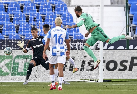 Tuy nhiên, quyết tâm của Leganes đã sớm bị dội gáo nước lạnh khi đội trưởng Sergio Ramos mở tỷ số ngay từ phút thứ 9 sau cú đánh đầu cận thành từ quả đá phạt của Isco.