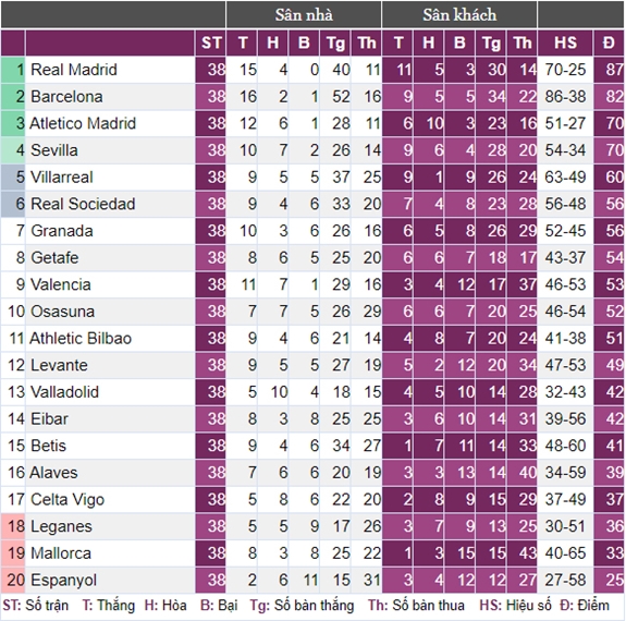 Bảng xếp hạng La Liga Ảnh: bongdaso.com. |