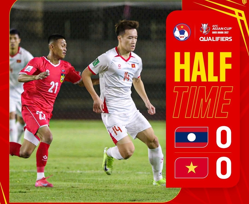 Kiểm soát hoàn toàn thế trận, nhưng hàng công đội tuyển Việt Nam vẫn thiếu đi sự sắc sảo. Phút 20, Văn Vĩ trả ngược bóng để Hoàng Đức tung cú sút chân trái sở trường, đưa bóng đi vọt xà ngang khung thành đội tuyển Lào trong gang tấc. Phút 31, từ quả đá phạt góc của đồng đội, Tiến Linh chạy cắt mặt đánh đầu đưa bóng đi chệch cột dọc. Sau đó vẫn là tiền đạo mang áo số 22 có pha kết thúc trong vòng cấm đưa bóng đi vọt xà ngang.